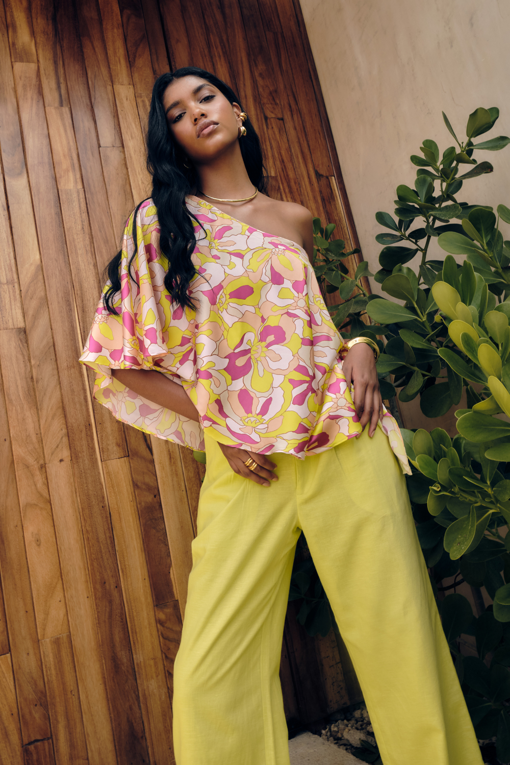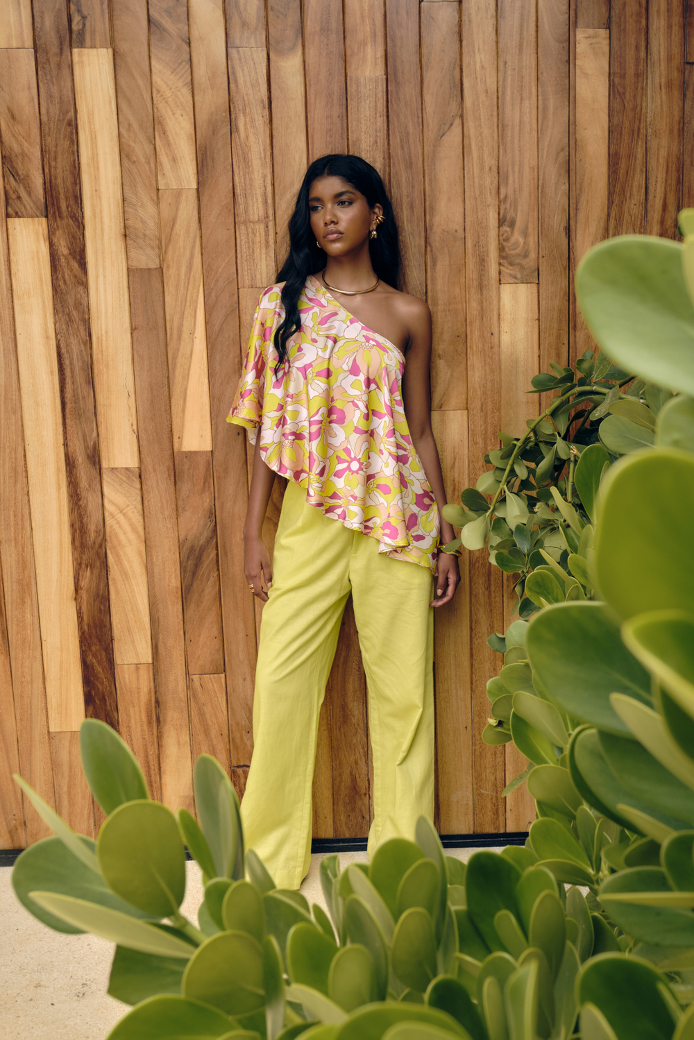 Pack a punch with the bright and cheery Audrey Pants. Cut in a linen/cotton fabrication with a fixed waistband and side pockets. Pleats lead to a wide leg shape for a cool and slouchy feel. Fully lined. Make it a set with the matching Robin Crop or Rita Knit.