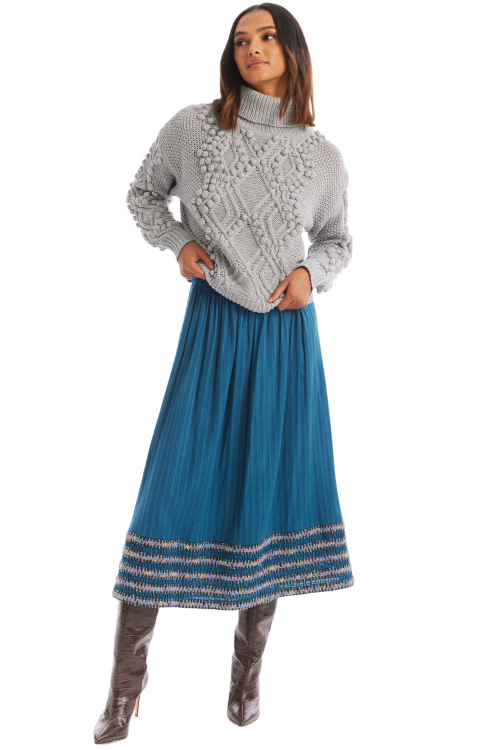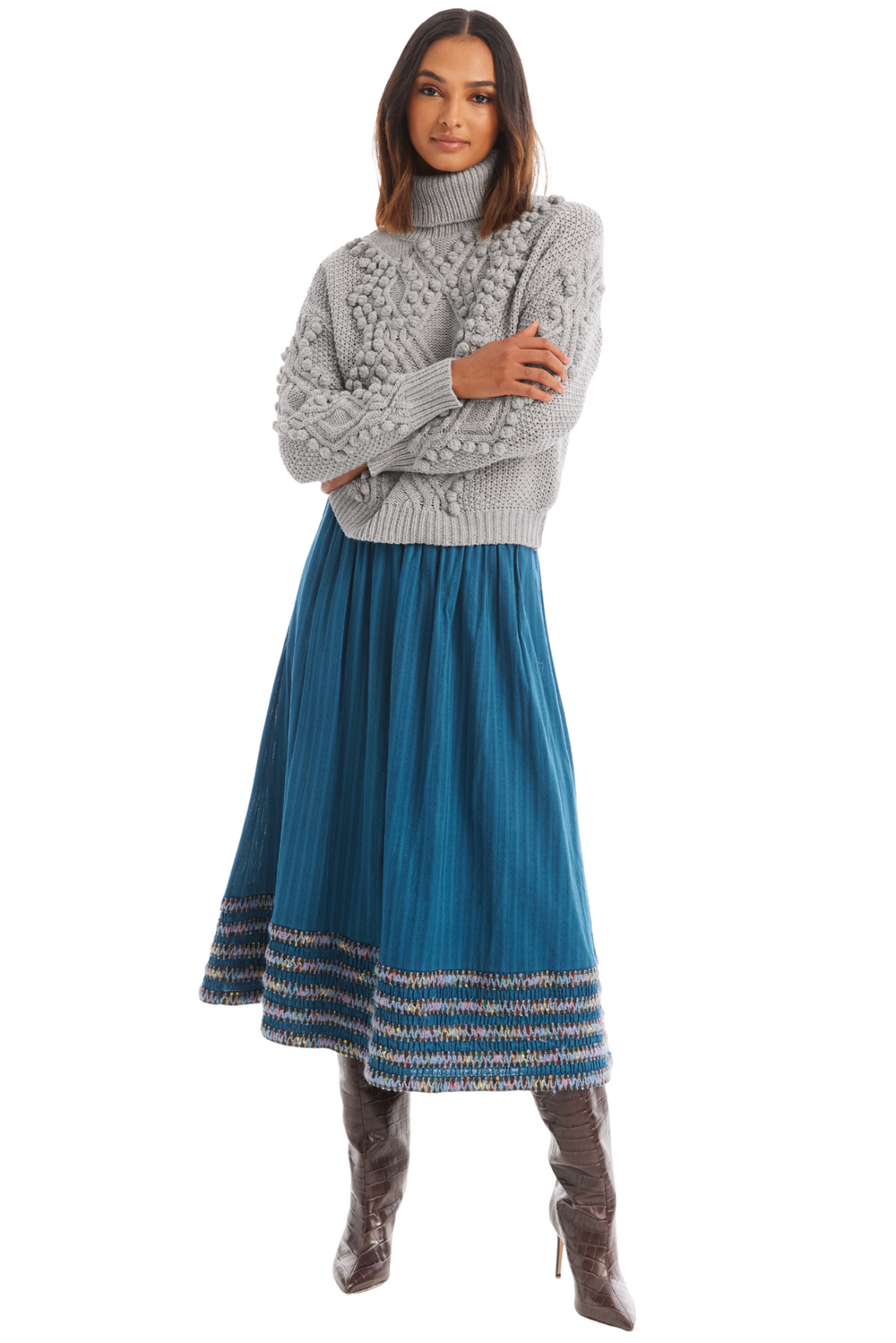 The DAPHNE SWEATER features playful hand-stitched pom poms and a relaxed fit for a stylish yet cozy look. High turtleneck and a dropped shoulder. This sweater has become an instant classic with new colors introduced each season.